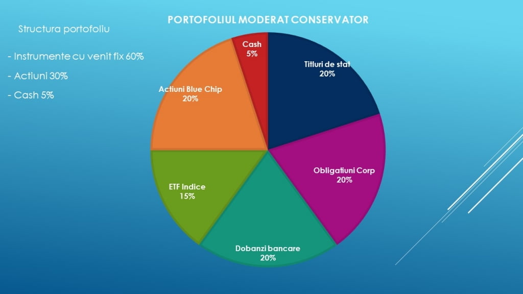 Acest tip de portofoliu este recomandat celor care vor să-și protejeze mare parte din capital dar sunt dispuși să riște totuși o parte din capital alocând un procent de până la 35% și către investiții în acțiuni ale companiilor listate la bursă.
