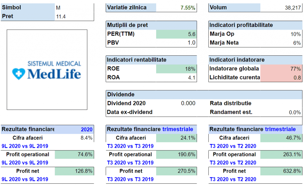 | Medlife | +97.6% | 0 lei | +97.6% |