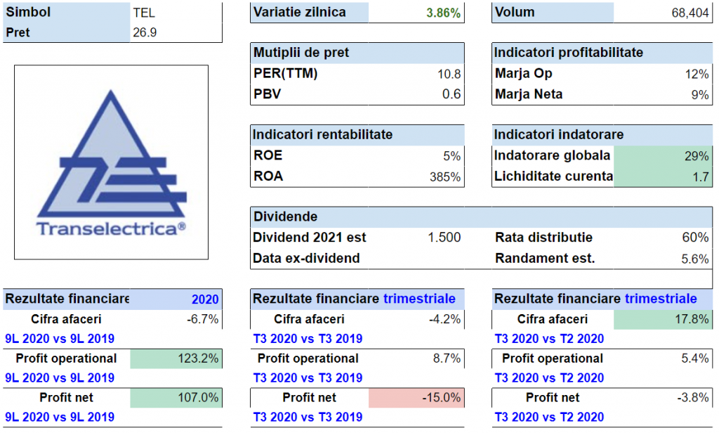 | Transelectrica | +29.6% | 0.48 lei | +32% |