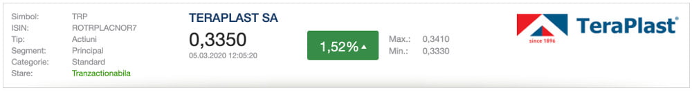 Alături de numele companiei, simbolul bursier și segmentul de tranzacționare vei găsi și ultimul preț la care s-au tranzacționat pe bursă acțiunile companiei.