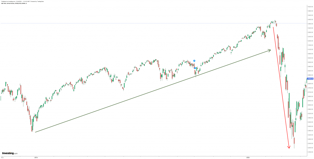 După un an 2019 in care indicele S&P500 a adus investitorilor un randament de aproximativ 30%, în 2020, odată cu răspânidrea virsului în tot mai multe state din Europa și instituirii măsurilor de izolare la domiciliu indicele a intrat într-un val de corecție care în scurt timp a dus la o prăbușire a bursei americane cu peste 35%.