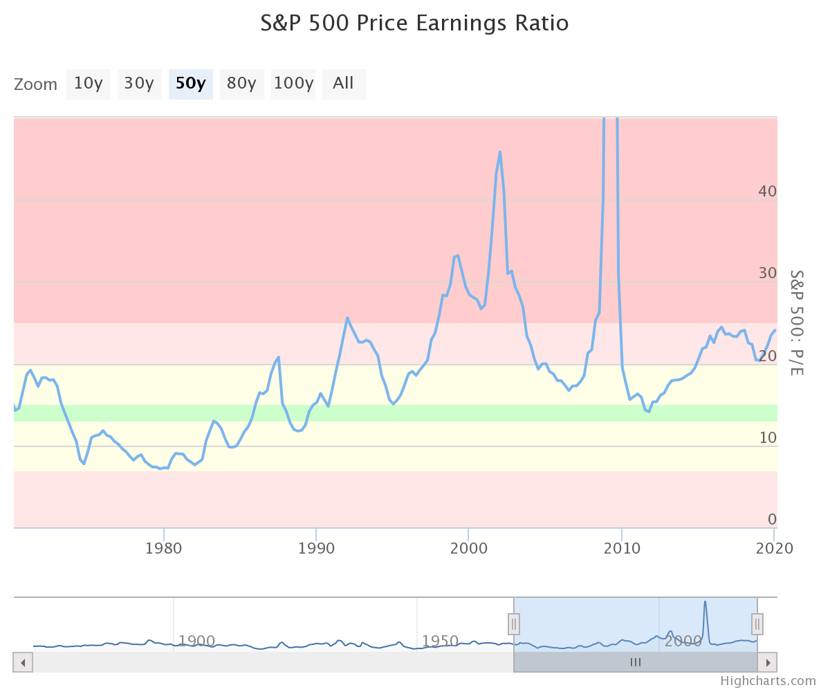 Într-un newsletter săptămânal al companiei BT Asset Mangement, analiștii companiei spun că în ciuda scăderilor din ultimele două săptămâni de pe bursa din SUA, acțiunile companiilor care compun indicele S&P500 încă nu au ajuns să fie ieftine din punct de vedere a multiplului de preț P/E.