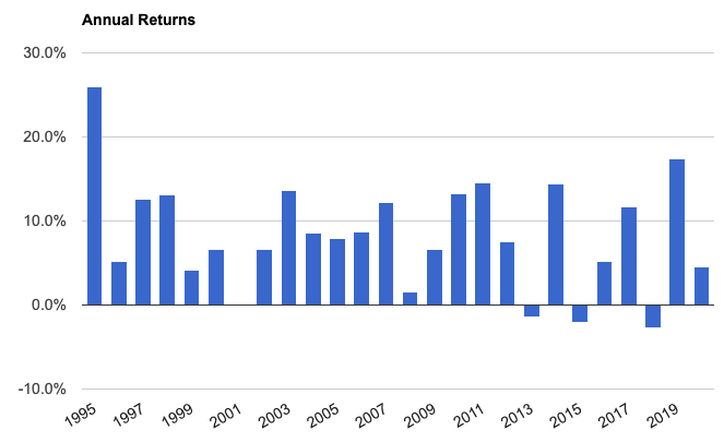 Randamentele obținute în ultimii 25 de ani de un portofoliu moderat – conservator