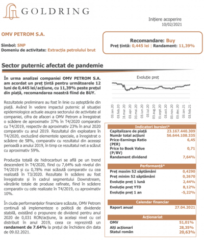 Analistii companiei de brokeraj Goldring au publicat recent doua rapoarte de analiza pentru companiile OMV-Petrom si Medlife in care au realizat diverse estimari privind rezultatele financiare pe care le-ar putea raporta companiile in perioada 2021 – 2024.