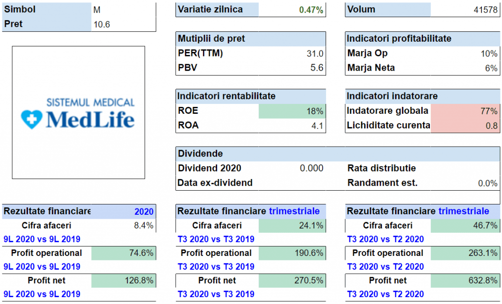Rezultatul net raportat pe T3 2020 a fost in crestere cu 270% fata de rezultatul raportat pe T3 2019 pe fondul unor venituri in crestere pe segmentul de spitale private.