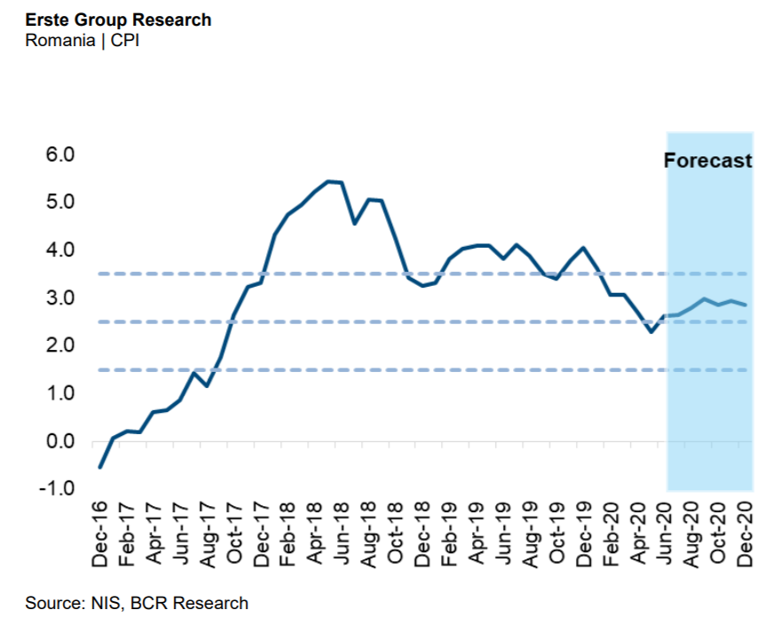Daca analizam si estimările pentru inflație realizate de analiștii de la Erste Group putem observa ca acestia se asteapta la o inflație pentru finalul anului 2020 de 2.8% și de 3.1% pentru anul 2021.