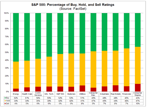 Cu toate că indicele S&P 500 a suferit o depreciere accelerată în prima parte a anului și analiștii se așteapta la scăderi ale veniturilor în trimestrului doi, analizând datele dintr-un raport publicat de FactSet am fost surprins să constat că peste 52% din companiilor cuprinse în indicele american S&P500 aveau la finalul lunii Iunie o recomandare de BUY din partea analiștilor financiari.