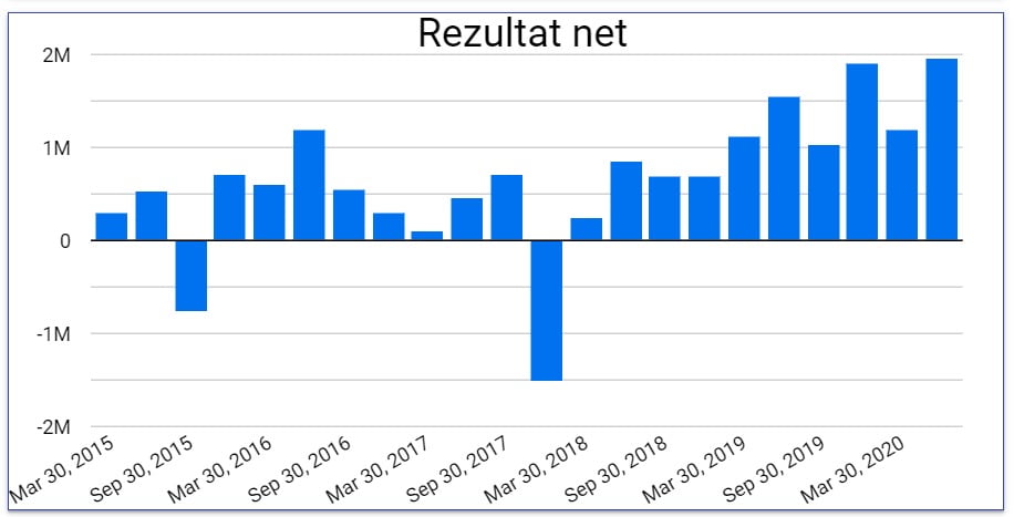 Dacă analizăm însă rezultatele la nivel trimestrial putem constata că pe trimestrul doi a acestui an compania a raportat un profit net de 1.96 mil lei fiind cel mai bun rezultat trimestrial raportat de companie în ultimii 5 ani.